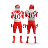 Custom American Football uniforms are made with 100% polyester stretchable 4 way lycra spandex fabric with added panels...